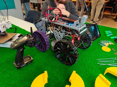 Die Idee entstand im Unterricht und wurde durch Brainstorming, Mindmapping und gemeinsames Recherchieren weiterentwickelt. Das Grundgerüst bildet ein umgebautes RC-Car, das durch Eigenkonstruktionen ergänzt und für das Mähwerk angepasst wurde. Zusätzlich kamen 3D-gedruckte Bauteile, recycelte Komponenten, eigene Werkzeuge sowie ein selbstgehosteter Webserver zum Einsatz. Jedes Teammitglied brachte spezifisches Wissen und Material ein – von Hardware bis Hosting.